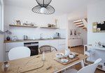 Ihre Doppelhaushälfte ist ebenso klassisch geplant. Treten Sie ein, hängen Sie Ihre Jacke gleich in der praktischen Garderobe im Flur auf. Das geräumige Wohnzimmer mit seinen großen Fenstern ist genau der richtige Ort für sonnige Gemüter, ein toller Treffpunkt für die ganze Familie mit schönem Blick in Ihren Garten. In der Küche haben Sie nicht nur viel Bewegungsfreiheit, sondern auch ausreichend Platz für eine gemütliche Sitzecke – perfekt für einen Familienkochabend oder ein gemeinsames Frühstück am Morgen.