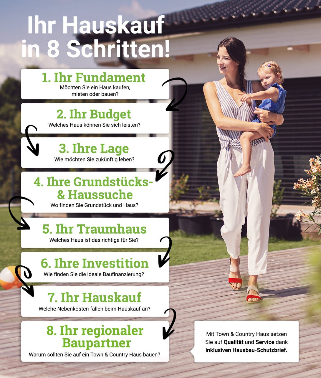 Sie wollen ein Haus kaufen und endlich Ihren Wohntraum verwirklichen? Die Suche hat Sie nicht zufällig auf unsere Website geführt! Hier sind Sie genau richtig, um Ihre Pläne Schritt für Schritt umzusetzen und ein Haus kaufen zu können. Wahrscheinlich haben Sie viele Fragen im Kopf, wie: was ist beim Hauskauf zu beachten und auch den einen oder anderen Zweifel. Vielleicht erscheint Ihnen der Weg ins Eigenheim sehr weit - Mit Town & Country Haus ist er kürzer, als Sie glauben!