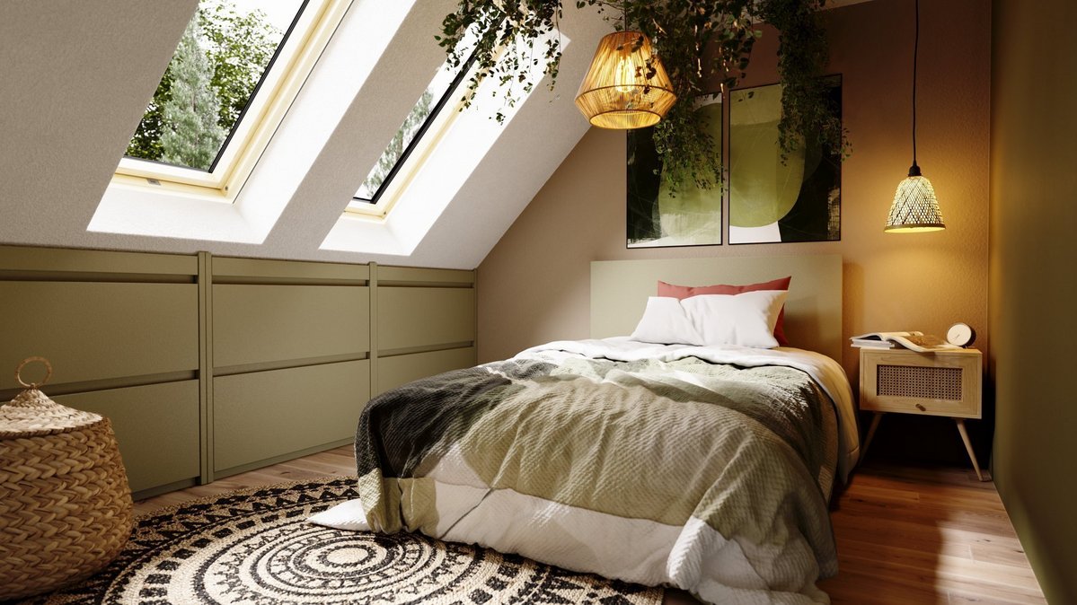 Die Wahl der Fensterdekoration spielt ebenfalls eine entscheidende Rolle: Helle Rollos oder Plissees schützen vor Hitze und neugierigen Blicken, ohne das Zimmer zu verdunkeln. So bleibt das Dachgeschoss lichtdurchflutet und behält gleichzeitig eine gemütliche Atmosphäre.